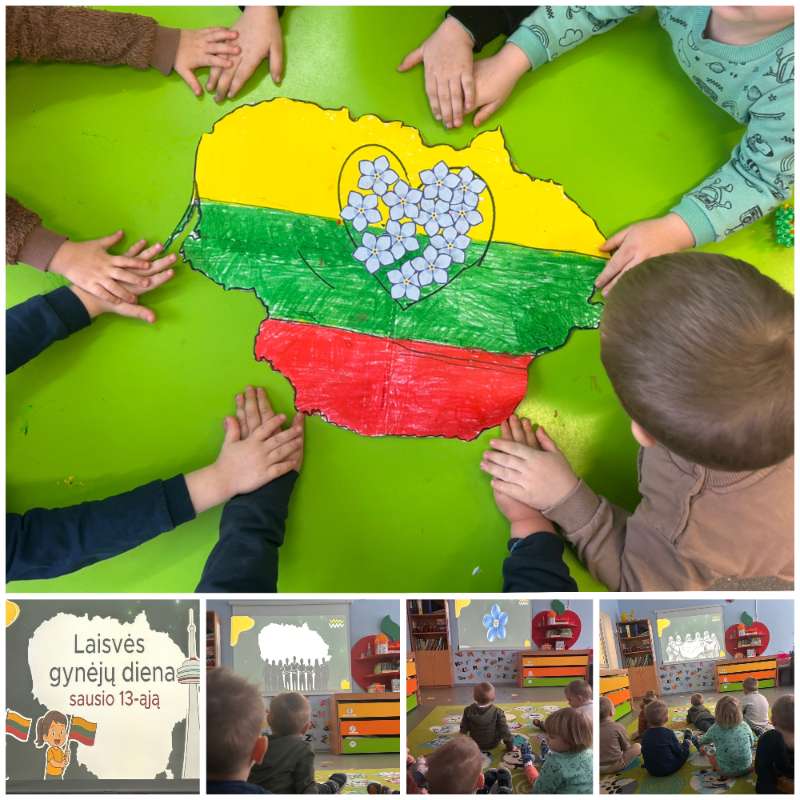 2026 m. sausio 13d. ikimokyklinio ugdymo grupių vaikai, minėdami Sausio 13-ąją – Laisvės gynėjų dieną – žiūrėjo filmą apie šios dienos įvykius, puošė Lietuvos žemėlapį trispalvės spalvomis (klijavo, spalvino, konstravo iš kaladėlių). Uždegę žvakelę, visi susikaupė ir tylos minute pagerbė laisvės gynėjus. Veiklos metu buvo ugdomas pilietiškumas, pagarba Lietuvos istorijai, kūrybiškumas, smulkioji motorika, dėmesio sutelkimas ir emocinis suvokimas.