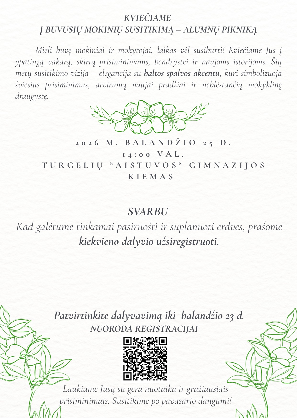 Kviečiame į ALUMNŲ piknikąKviečiame visus buvusius mokinius ir mokytojus registruotis į artėjantį susitikimą! Būsime labai dėkingi, jei pasidalinsite…