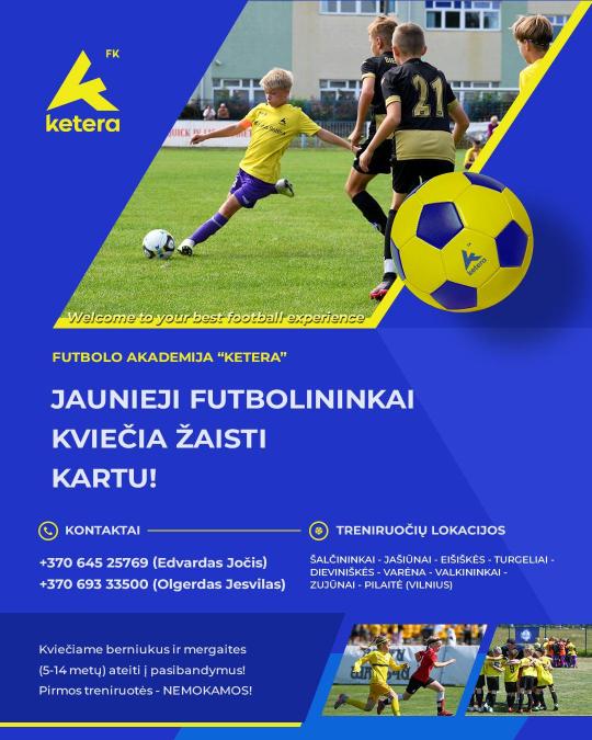 FK _Ketera_ kviečia 5–14 metų berniukus ir mergaites prisijungti prie mūsų organizuojamų futbolo treniruočių! Tai…