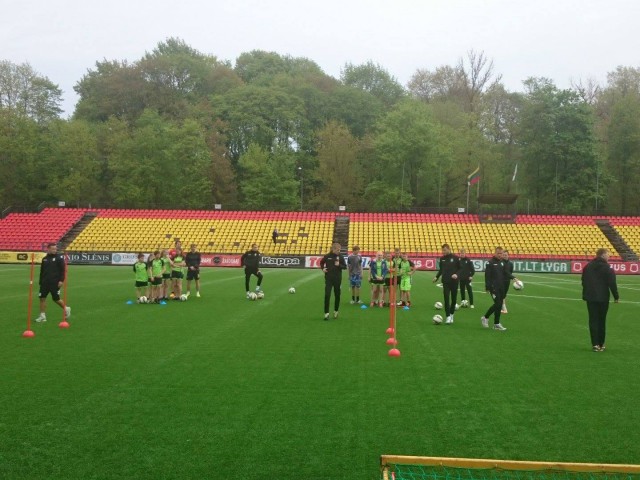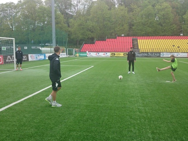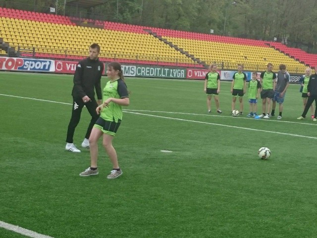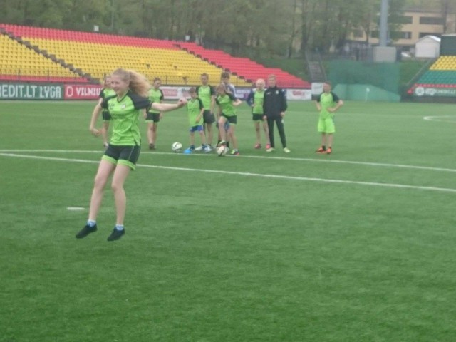 Gegužės 6 dieną mūsų gimnazijos mokiniai dalyvavo edukacinėje kūno kultūros pamokoje Lietuvos futbolo federacijos stadione. Trečiadienį Vilniaus „Žalgirio” treniruotėje apsilankyti turėjo galimybę ne tik gimnazijos moksleiviai bet ir mažieji darželio „Pasaka” auklėtiniai