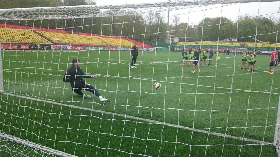 Edukacinė kūno kultūros pamoka Lietuvos futbolo federacijos stadione Vilniuje