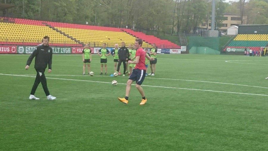 Edukacinė kūno kultūros pamoka Lietuvos futbolo federacijos stadione Vilniuje