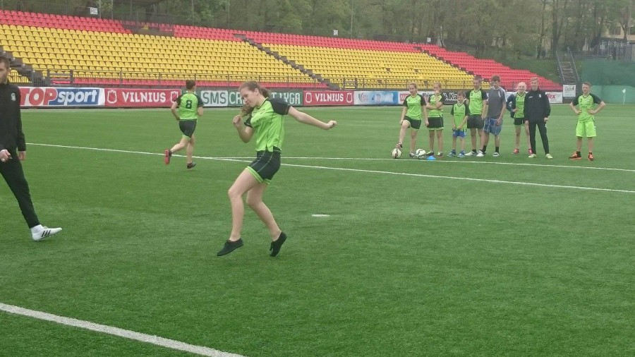 Edukacinė kūno kultūros pamoka Lietuvos futbolo federacijos stadione Vilniuje