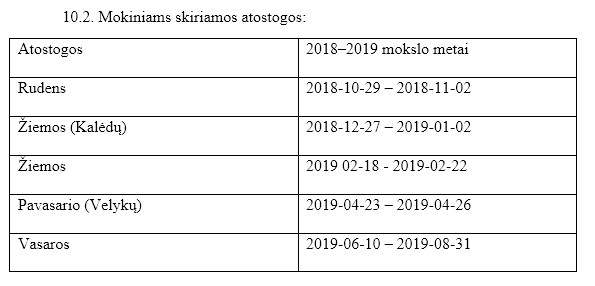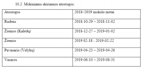 Ugdymo proceso trukmė, atostogos