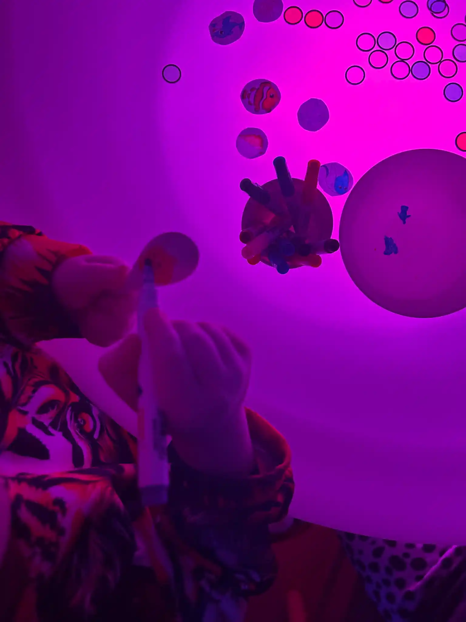 💧 ant „stebuklingų šaukštelių“ su specialiais flomasteriais piešė jūros gyventojus ir „apgyvendino“ juos savo sukurtoje jūroje.